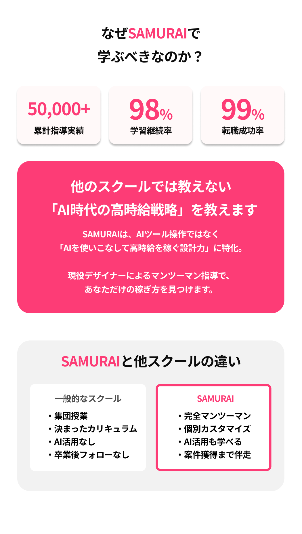 SAMURAIの無料カウンセリングは参加者満足度99%の人気サービスです。
