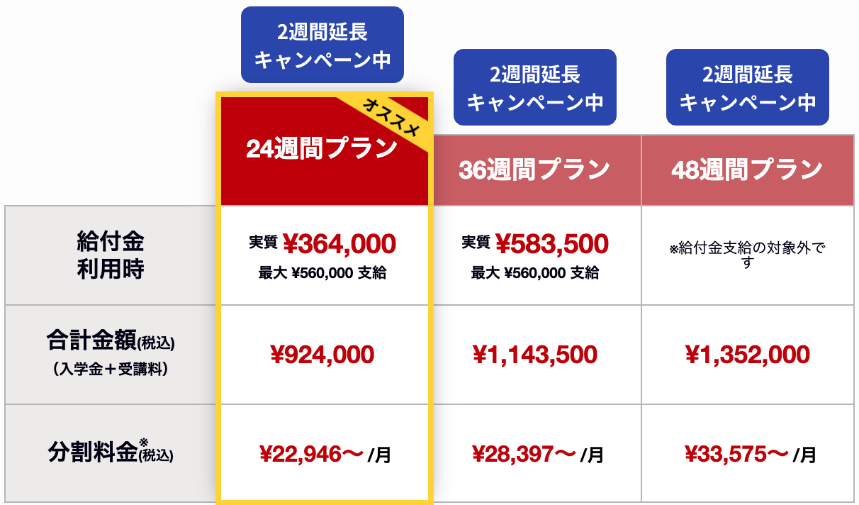通常料金から最大64,900円(税込)割引で受講可能。